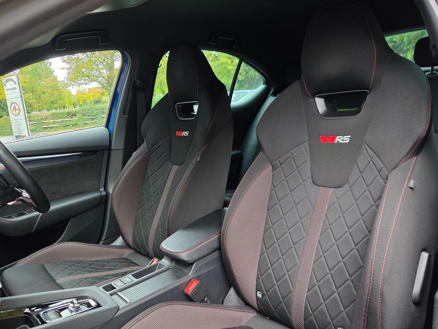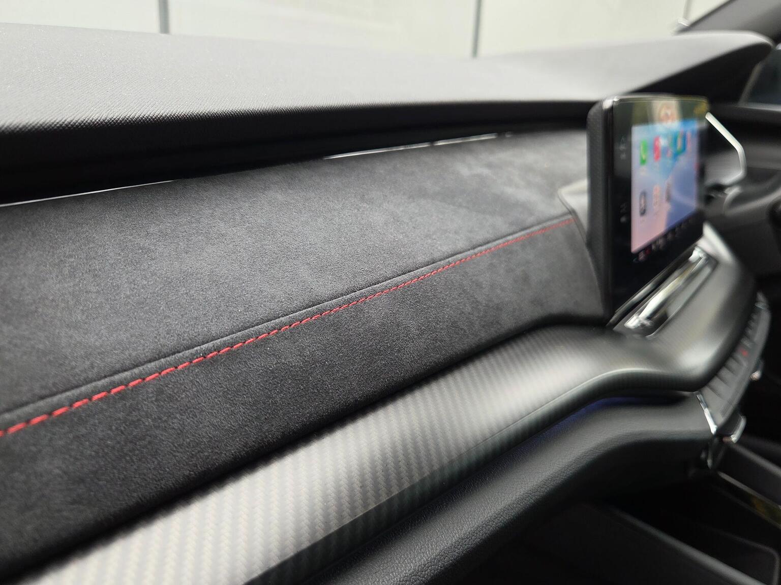 The interior features VRS embossed seats accented with red stitching, complemented by Carbon effect and Alcantara dash inlays, also detailed with red stitching.